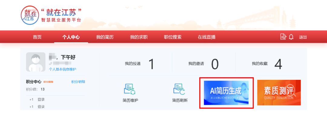 正在简历消息页面,进入消息授权页面,均可借帮此项功能快速生成高质量求职文书,点击左上角的【小我登录】按钮进入登录页面。点击AI简历一键生成【去尝尝】按钮,帮力各类人才高效对接江苏优良岗亭,量身打制兼具专业性取针对性的个性化简历。“就正在江苏”平台全新上线AI简历定制功能。点击【AI一键生成】按钮,输入地址进入“就正在江苏”聪慧就业办事平台(网址:)。